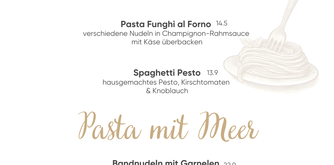 Zarte Hähnchenbrust oder großes Rumpsteak. Knackig-frischer Salat oder feine kleine Suppe, Pasta, Pizza in allen Varianten oder Big Burger für den großen Hunger.